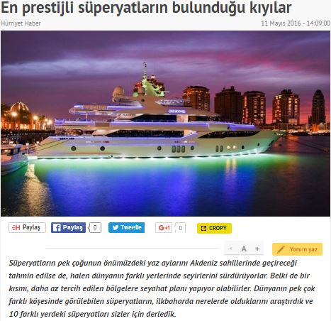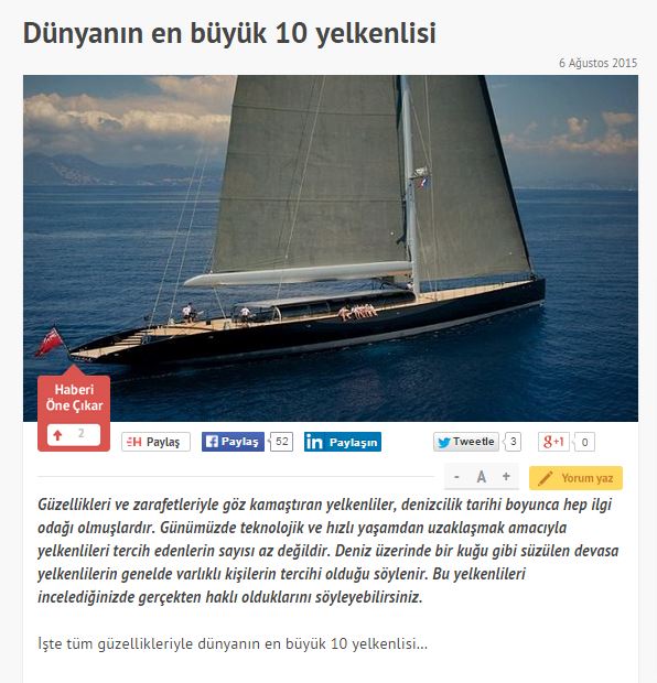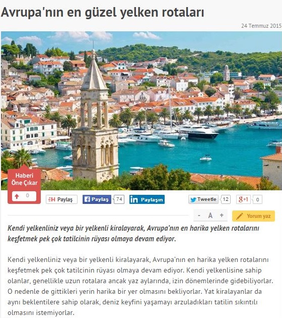 Yatvitrini.com is the leading marine portal in Turkey. By providing definitive in information resource for boat owners and the boating industry. Yatvitrini.com continues to build a leading presence in the recreational and commercial boating market and is focused on providing an economical online solution for boat brokers and private sellers. Privately owned by Turkish company.