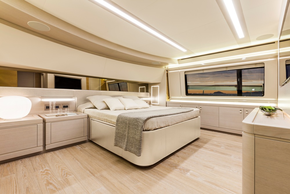 Yeni Ferretti Custom Line Navetta 28 “kardeşi” ve serinin amiral gemisi Navetta 33 Crescendo’dan çeşitli yenilikçi çözümleri miras olarak alması yanı sıra, birçok yeniliği de sahip. Seçkin ve göz alıcı dış çizgilerinden başlayarak, eşsiz işçiliği ile deniz üstünde bir heykel olarak tanımlayabilinecek sofistike bir deniz esintisine erişen bir çok özellik bu tekneyi benzersiz kılıyor.