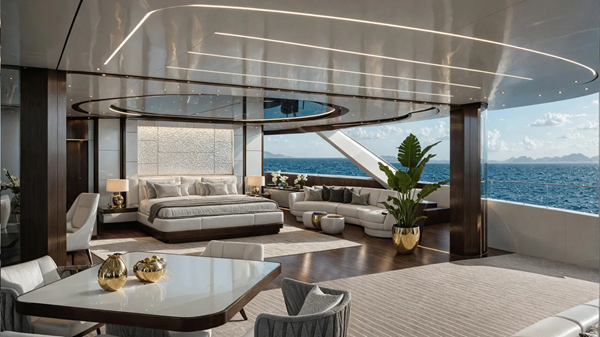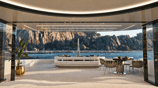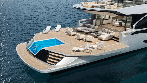 Bunun haricinde hard top tavana sahip güneş güvertesi ve geniş yüzme platformu süperyatın öne çıkan özellikleri arasında. Toplam 16 kişilik misafir kapasitesine sahip olan süperyatın tekne sahibi süitinde özel bir yemek odası, ofis, oturma grubu ve 40 metre karelik balkon yer alıyor.