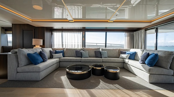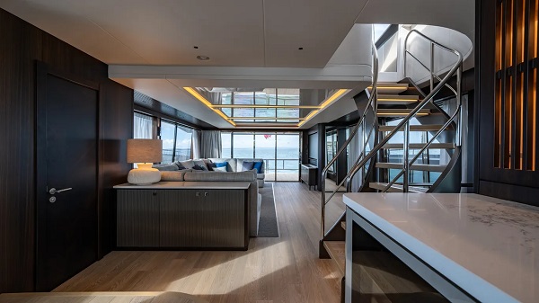 Ocean serisinin en yenisi olarak lanse edilen motoryat, GRP malzemeden üretiliyor. Baştan tasarlanan kapalı flybridge güvertesiyle fark yaratan modelin 7,2 metre genişliği dikkat çekiyor. Ekstra genişliğiyle muazzam iç hacimler sunarken, tavandan yere kadar cam olarak tasarlanan sancak sürgülü kapı, iskele taraftaki yine tam boy cam ile kusursuz şekilde eşleşiyor. Bu sayede ana güvertede kesintisiz panoramik manzara karşımıza çıkıyor.