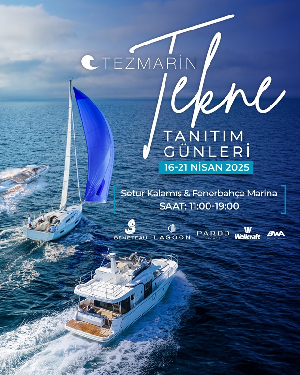 16-21 Nisan 2025 tarihlerinde düzenlenecek olan Tezmarin Tekne Tanıtım Günleri'nde; yelkenli, motorlu, katamaran, bot ve motorlu teknelerden oluşan 11 farklı model deniz severlerle buluşacak.