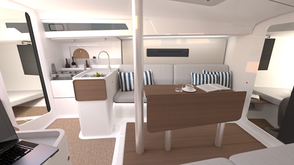 First 30, ihtiyaç duyulan her şeyi sunuyor: 1,85 metre (6,0 ft) tavan yüksekliğine sahip konforlu bir salon, yalpa çemberli ocak ve buzdolabı ile donatılmış fonksiyonel bir mutfak, duş/tuvalet, standart boyuttaki ön kabin ve depolama alanlarına sahip haftalık seyir için yeterli büyüklükte arka kabin.
