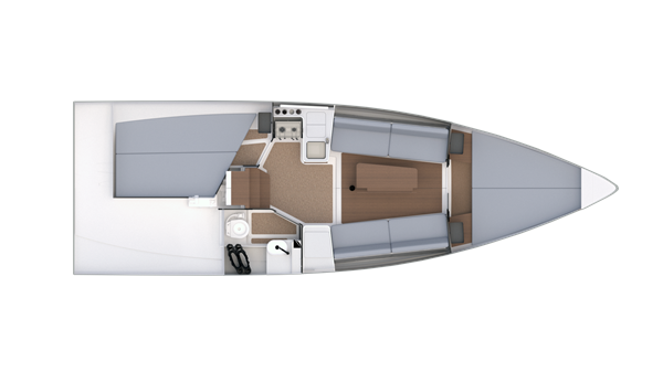 Güverte ve kokpit düzeni, iki ana hedef göz önünde bulundurularak tasarlanmıştır: Büyük ve rahat bir dinlenme alanı yaratmak ve mükemmel yelken ergonomisi sağlamak. İki ayrı güverte düzeni seçeneği mevcuttur: biri günübirlik denizciler için, diğeri yarışçılar için. Her iki kokpit düzeni de sırt dayanakları ve küpeşteler gibi özenle tasarlanmış fonksiyonel özelliklere sahip geniş kokpit yerleşimi sunar. Gezi düzeninde, ana yelken ve cenova ıskotaları, uygun boyuttaki vinçler aracılığıyla kontrol edilir. Bu nedenle yelken ayarı için aşırı fiziksel güç gerekmez. Kontrol hatları, tekne yatık olduğunda bile her zaman kolayca erişilebilir konumdadır ve kokpit zemini tamamen düzenli kalır. Yarış düzeninde, yarış denizcileri için tanıdık bir çalışma alanı yaratmak üzere bir ana yelken arabası ve ek trim kontrol hatları eklenir.