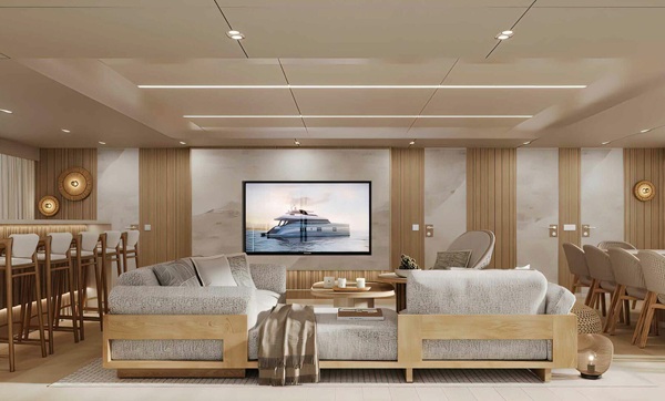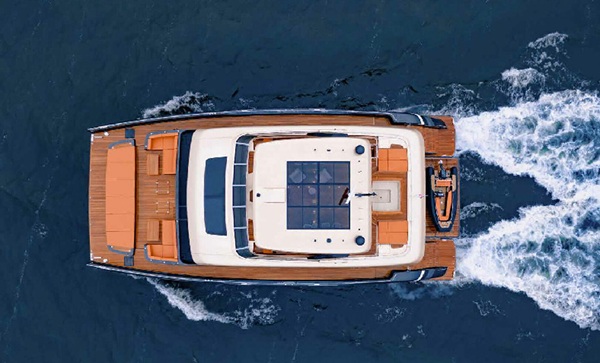 Toplam 5 kamarada 10 misafir ağırlayabilen motoryatta, 4 kişilik mürettebat için de özel yaşam alanları bulunuyor. Geniş flybridge güvertesinde yer alan jakuzi, bar ve barbekü alanı ise açık hava yaşamını ön plana çıkaran detaylar arasında yer alıyor. Kıç bölümde bulunan beach club ise, denizle iç içe vakit geçirmek isteyen misafirler için ideal bir ortam sunuyor.