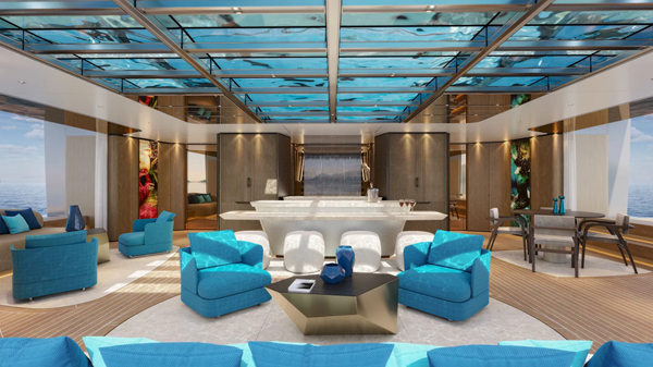 Ana güvertede misafirler için beş geniş kamara ve lounge bölümleri sunulurken, güneş güvertesi süperyatın sosyal merkezi olarak tasarlanmış. Bu bölümde bar, güneşlenme minderleri ve başta yer alan jakuzi dikkat çekiyor.